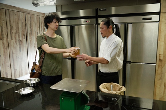 ラーメン・テーを含め映画の料理監修を務めたのは、竹田敬介氏。2005年に「黒味噌ラーメン 初代けいすけ」を開店以来、日本全国にさまざまなコンセプトのラーメン店を構えるほか、近年はシンガポールでもラーメン店をはじめとする多くの店舗を手がけている。斎藤演じる真人のラーメン・テー作りに協力する料理店経営者として、劇中にも登場した。