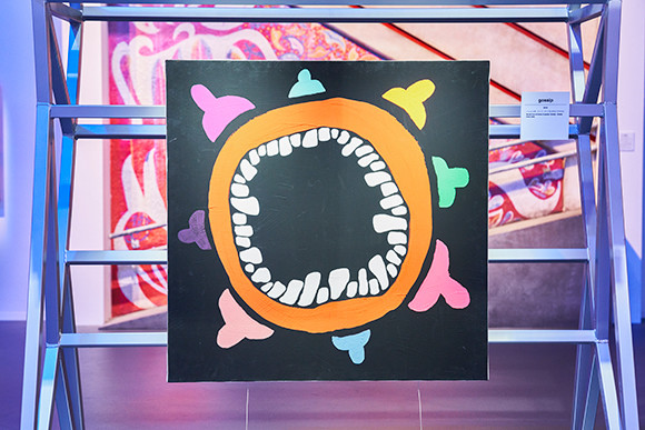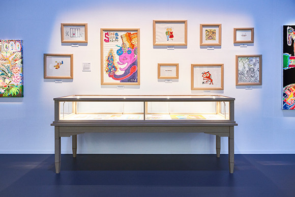 展覧会の冒頭に回転する客席に座って鑑賞するムービーでは、映画『クソ野郎と美しき世界』でタッグを組んだ映像ディレクター、児玉裕一とコラボレートし、独特の世界観を爆発させている。「自分の絵を観てもらう前に、その導入として気持ちを上げてもらいたくて。今回は会場がステージなので、その幕が開く前のオープニングムービーとして捉えています」。その鍵を握る冒頭のムービーには、いまの想いを全部詰め込んだと語る。