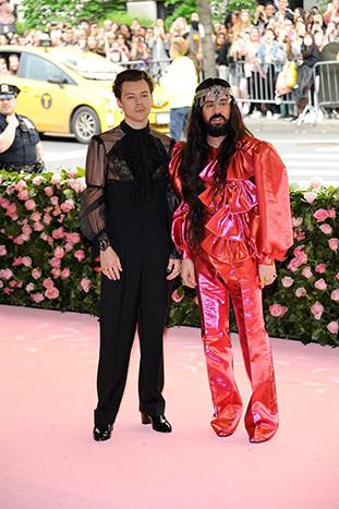 ハリー・スタイルズ(左)とアレッサンドロ・ミケーレ(右)はともに、グッチの衣装に身を包んで。(アメリカ・ニューヨーク、2019年5月6日)photo:Getty Images