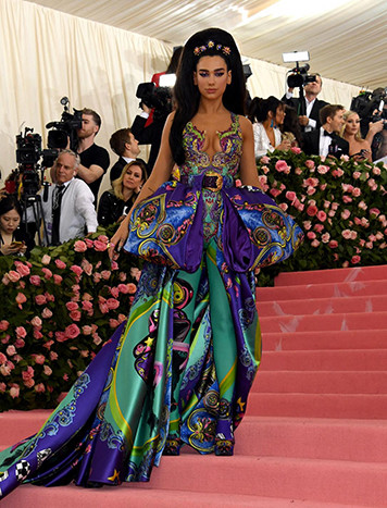 デュア・リパの孔雀のようなドレスはヴェルサーチェ。(アメリカ・ニューヨーク、2019年5月6日)photo:Getty Images