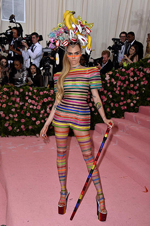 カーラ・デルヴィーニュのキャンディのようなドレスはディオール。(アメリカ・ニューヨーク、2019年5月6日)photo:Getty Images