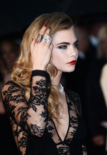 2013年5月、大親友であるリアーナの勧めに従って、タトゥーデビューしたカーラ・デルヴィーニュ。右の人差し指に刻まれたライオンのタトゥーがブロンドヘアによく似合っている。現在では、足に刻まれた「Made in England」「Bacon」という有名なタトゥーをはじめ、15個ものタトゥーが。photo:Getty Images