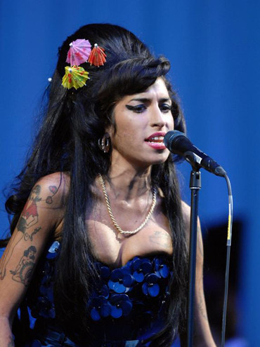 12個のタトゥーも伝説の一部となった故エイミー・ワインハウス。中でも3人のピンナップガールや蹄鉄をモチーフにしたロカビリーテイストのイラスト、エイミーの死からいまだ立ち直れずにいる前夫ブレイク・フィールダー=シヴィルへの愛の宣言である、左胸に彫られたポケットとその上に刻まれた「Blake」の文字が有名だ。photo:Abaca
