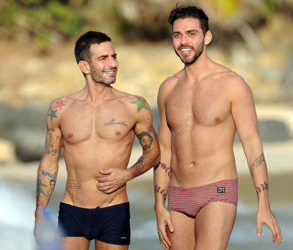 マーク・ジェイコブス(左)はまるで歩くカートゥーン。アメリカ人デザイナーの身体には28個ものタトゥーが入っている。どれも、右上腕のスポンジ・ボブのようにカラフルな絵柄だという。photo:Abaca