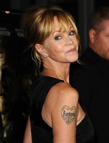 1998年に夫アントニオ・バンデラスへの愛の証をタトゥーに刻んだメラニー・グリフィス。しかしその後カップルは破局。グリフィスは18年の結婚生活の象徴であるタトゥーをレーザー除去する決意をした。以後、タトゥーがあった部分にかわいらしい絆創膏を貼った姿が目撃されている。photo:Getty Images