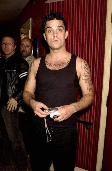 ロビー・ウィリアムズもタトゥーマニアのひとり。しかしどんなマニアにも言えることだが、度を越すとおかしなことになる。彼の胸に刻まれた「chacun à son goût」というフレーズがそのいい例。グーグル翻訳サービスの濫用にはご注意を。photo:Getty Images