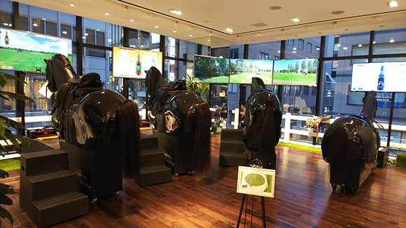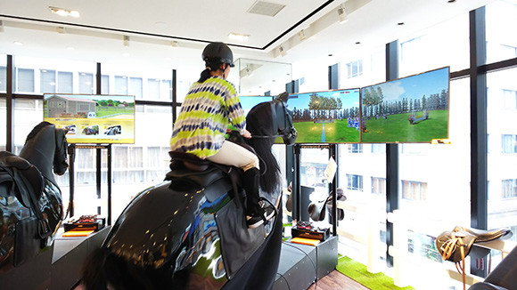 実馬に騎乗せずとも、本格的な乗馬体験を最新マシンで楽しめる。