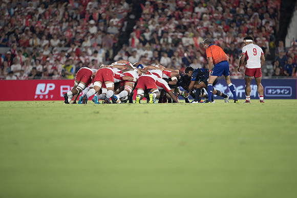 押し合いが行われていますが、スクラムを故意に崩してしまうと、「コラプシング」という反則になってしまいます。ラグビーワールドカップではスクラムが勝敗のポイントになりそうですよ。
