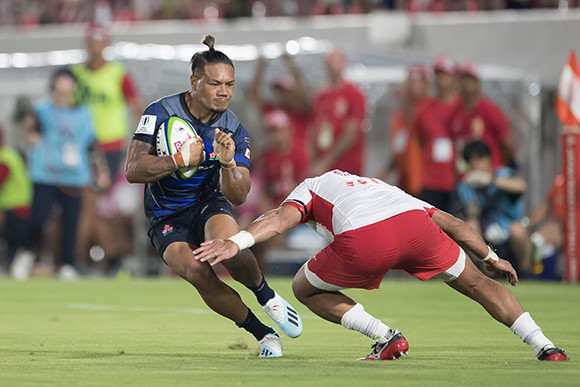 華麗なステップで相手選手のタックルをかわす、ウィング(BK)のレメキロマノラヴァ(ホンダ)