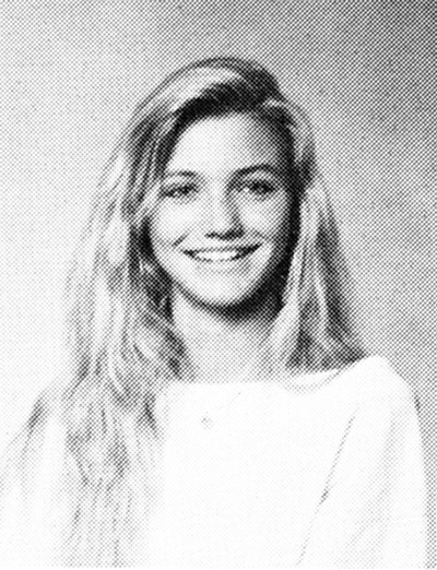 キャメロン・ディアス:1989年、カリフォルニアの高校在学時のキャメロン。長身のブロンドガールは当時からすでに人気者だったに違いない。校内のサッカーチームのチアガールをしていてスカウトされたキャメロンは、高校1年生の時にモデルエージェント「エリート」と契約。21歳だった1993年、映画『マスク』のプロデューサーらと面会したエージェントの勧めでオーディションを受け、見事合格。女優としてのキャリアがスタートする。(アメリカ・ロサンゼルス、1989年)photo: Abaca