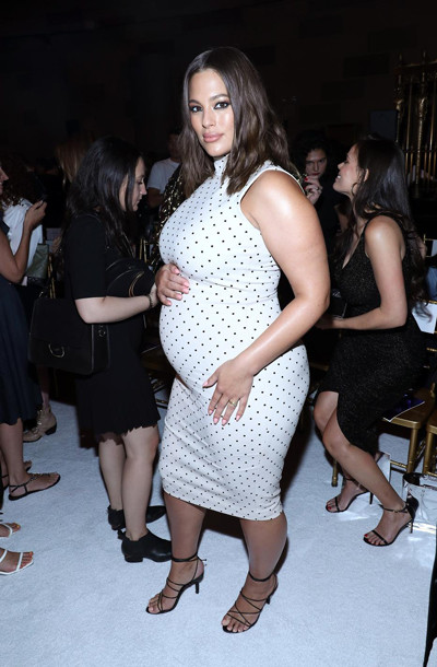 ベビーバンプを見せつけるモデルのアシュリー・グラハム。クリスチャン・シリアノのショー会場にて。(アメリカ・ニューヨーク、2019年9月7日)Photo: Getty Images