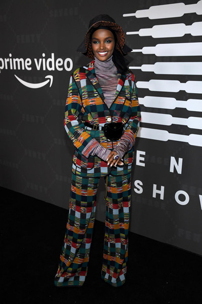 サベージ x フェンティのショーでは、下着をアウターとして見せるコーディネートを取り入れた招待客が最前列を埋め尽くした。その中でおそらく唯一の例外と思われるトップモデルのハリマ・アデン。(アメリカ・ニューヨーク、2019年9月10日)Photo: Getty Images