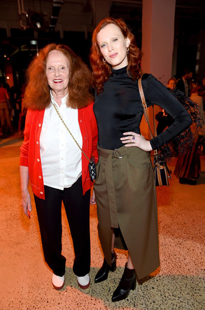 グレース・コディントン(左)とカレン・エルソン(右)。モードアイコンがふたり並んだ贅沢なショット。しかもどちらも赤毛。(アメリカ・ニューヨーク、2019年9月10日)Photo: Getty Images