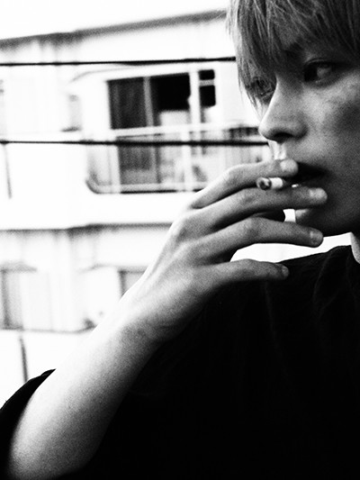 スタジオ内でしばらく撮った後、屋外スペースにも出て撮影を続行。神尾が煙草を吸う様子はさまになっていてとてもカッコいい。女装の時とはカメラに向ける眼差しもまるで違っていた。