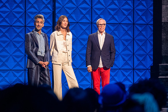 番組の共同司会者タン・フランス(左)とアレクサ・チャン(中央)。そしてデニムをテーマにしたエピソードにゲスト審査員として登場したトミー・ヒルフィガー(右)。