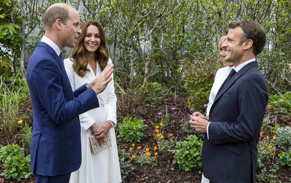 エマニュエル・マクロン仏大統領とブリジット夫人と楽しそうに会話するウィリアム王子とキャサリン妃。(エデン・プロジェクト、2021年6月11日) photo : Abaca