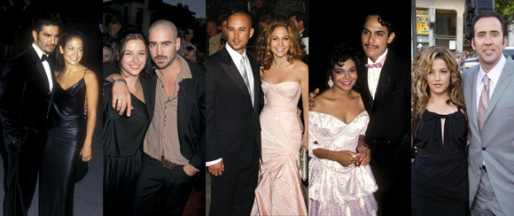 左から右へ、クリス・ジャッド&ジェニファー・ロペス、コリン・ファレル&アメリア・ワーナー、オジャニ・ノア&ジェニファー・ロペス、ジャネット・ジャクソン&ジェームズ・デバージ、リサ・マリー・プレスリー&ニコラス・ケイジ。photos : Getty Images, Abaca
