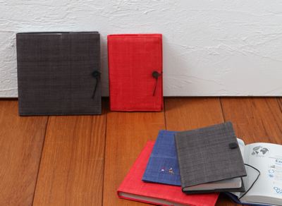 カバーの麻布は、動力を使わずに織り上げる、昔ながらの手紡ぎ手織りの製法で、1疋(約24m)の生地が製糸から織りまで多くの人の手と時間をかけてつくられている。”エコ”をコンセプトに、日本の伝統工芸とフランス生まれのダイアリーが結びついた逸品だ。