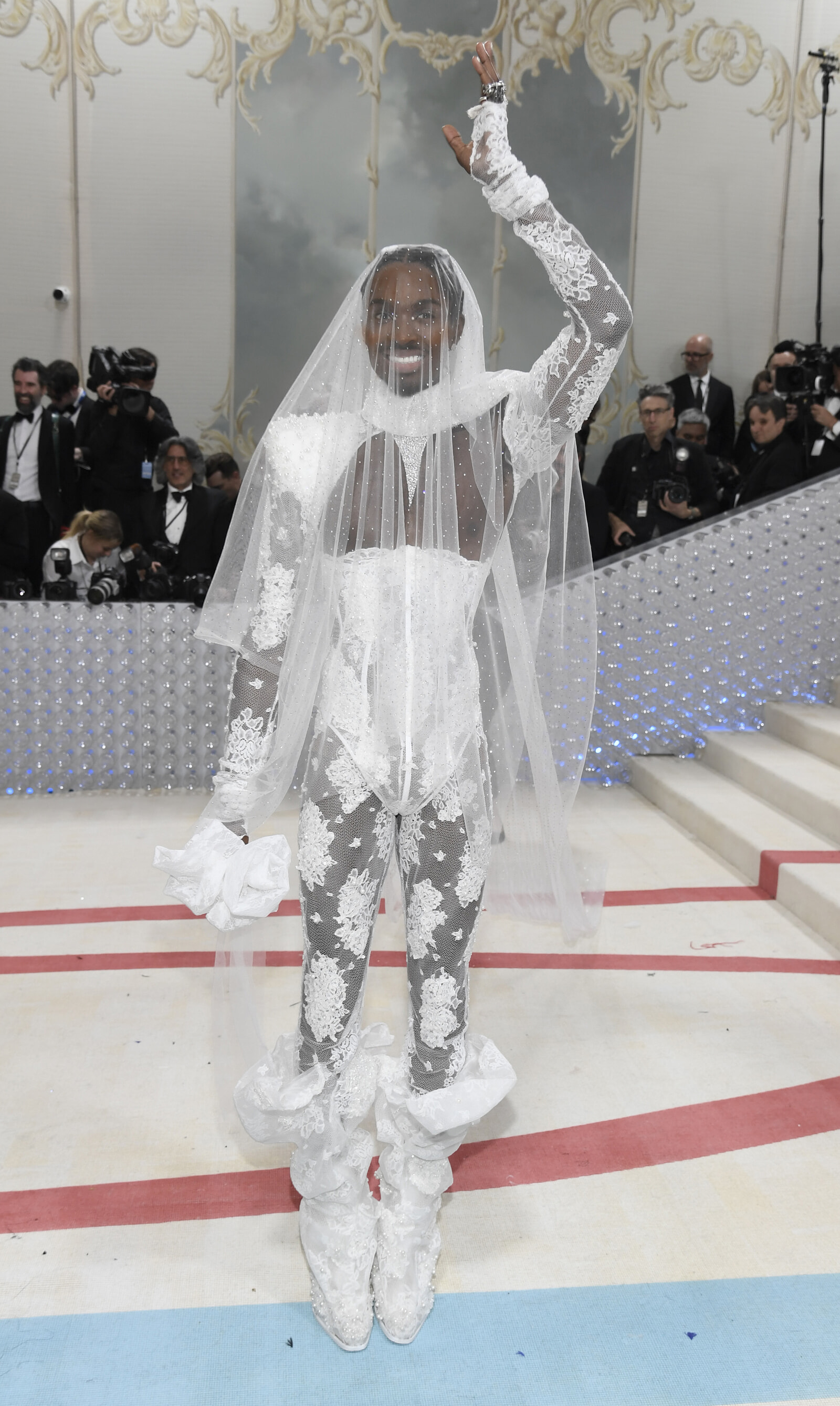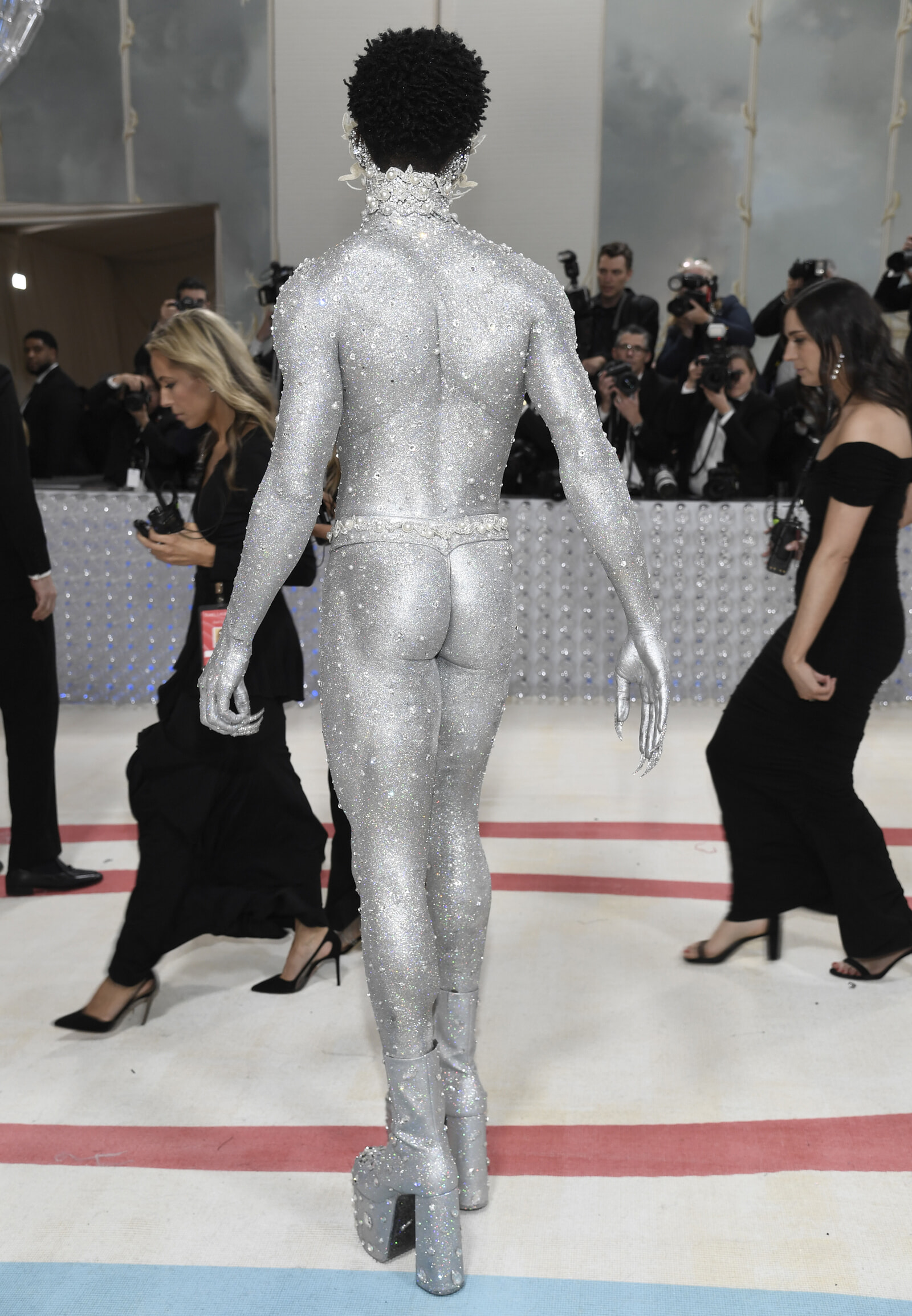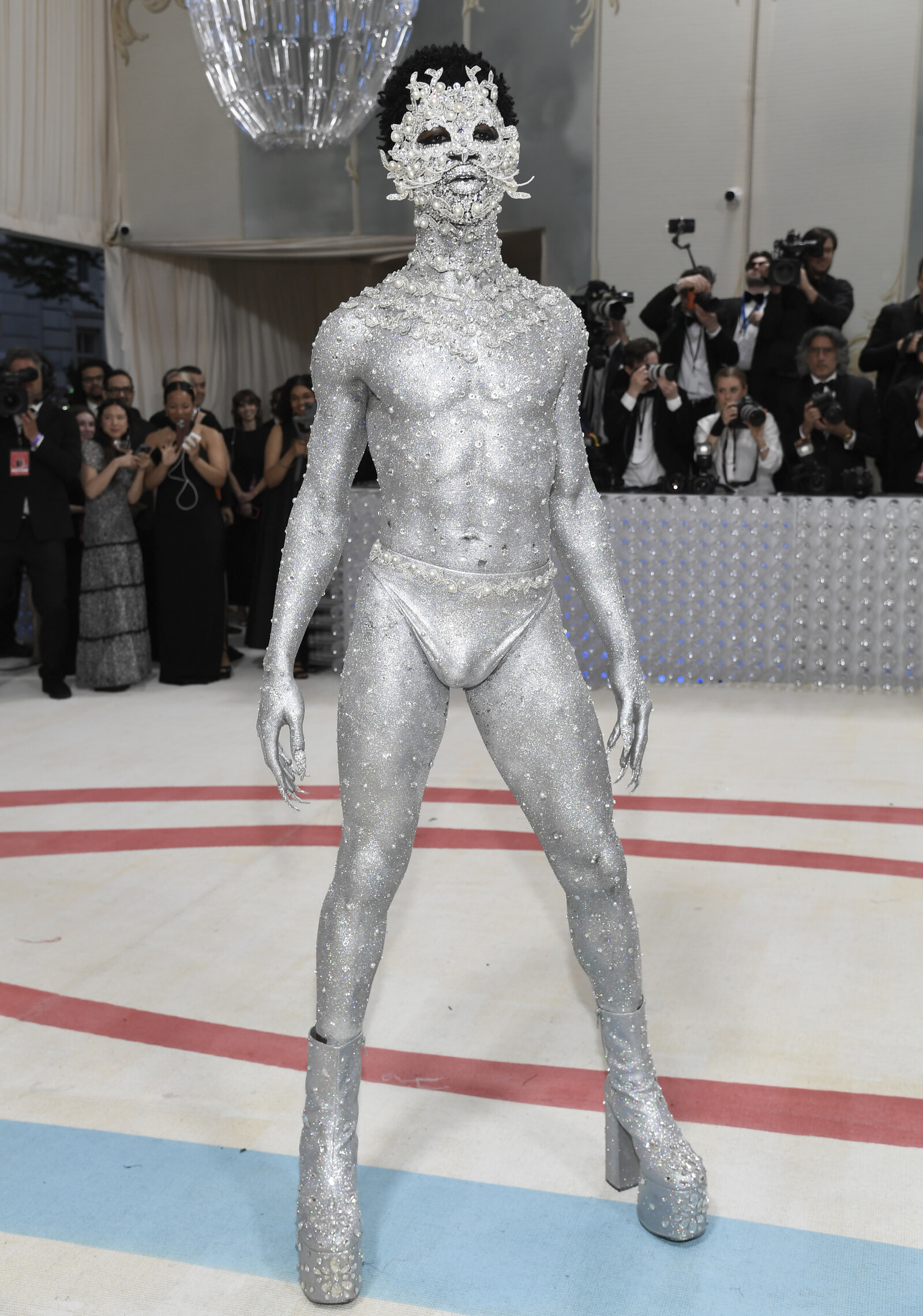 毎回斬新なスタイルが話題になるリル・ナズ・X。今年は全身をシルバーにペイントし、クリスタルとパールをあしらった猫マスクで登場。裸にパンツをはいただけに見えるけれど、一体どうなっているの!?