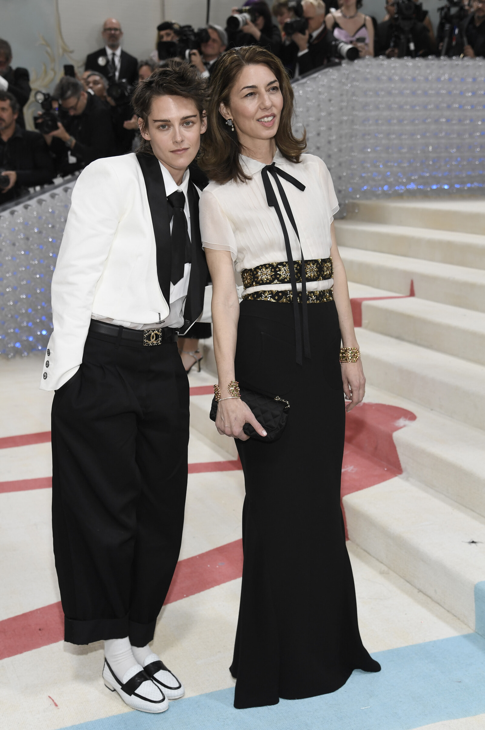 カールのミューズだったクリステン・スチュワートは、モノトーンのモダンなタキシードルックで登場。ポーズまで男前でハンサムな佇まい。隣に居るのはソフィア・コッポラ監督。会場には元彼ロバート・パティンソンが現在の恋人、スキ・ウォーターハウスと来ていたけれど、カチ合わなかったのだろうか。