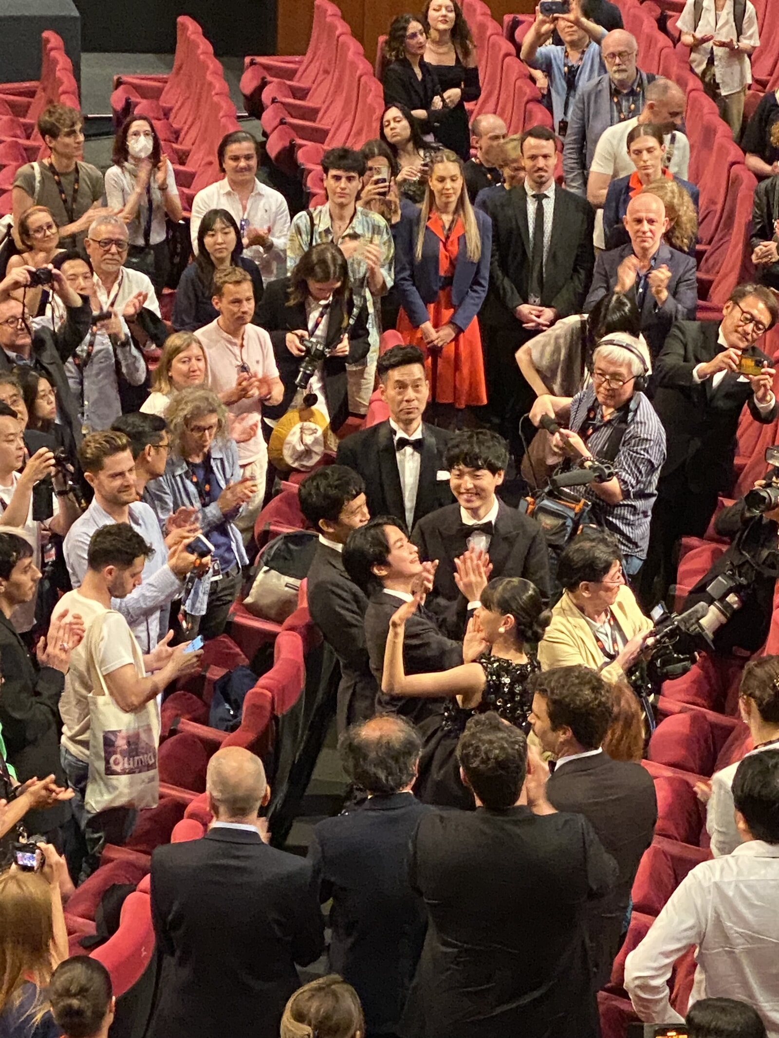 上映後、スタンディングオベーションを受ける奥山組。©︎Momoko Suzuki