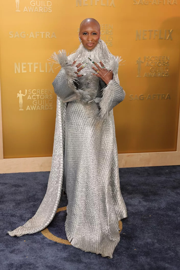『ウィキッド ふたりの魔女』の主演女優、シンシア・エリヴォも目立っていた。なにしろ故リー・アレキサンダー・マックイーンがデザインし、1997年にモデルのデブラ・ショーが披露したジバンシィ1997-1998年秋冬コレクションのドレスを着てきたからだ。編み込みラフィアとフリンジ袖が特徴的なアーカイブ作品だ。