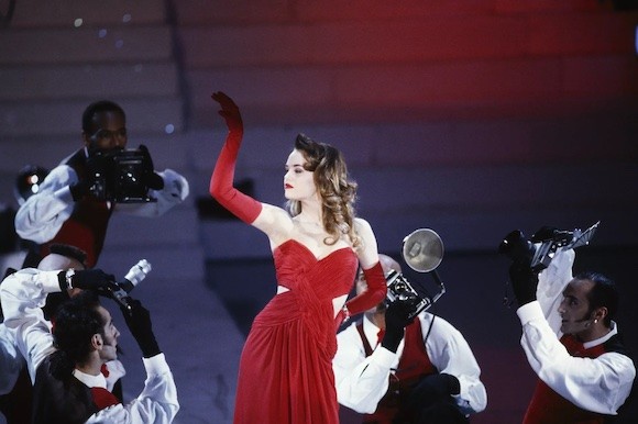 カメラのフラッシュにも動じない様子でセザール賞授賞式の舞台で演じるヴァネッサ・パラディ。(パリ、1989年2月) photo : Getty Images