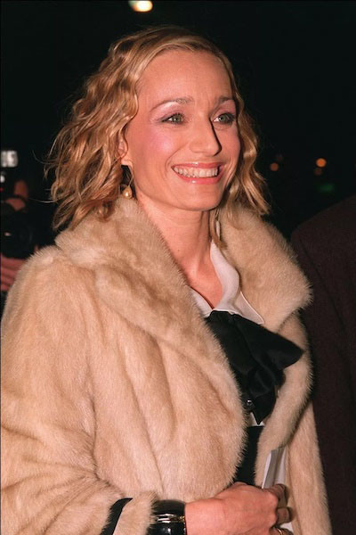 ワッフルスタイルのブロンドヘアにファーコート。第26回のセレモニーに、満面の笑みで登場。(パリ、2001年2月24日) photo : Abaca