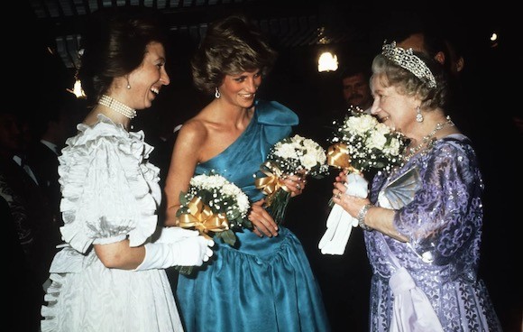 1985年、映画『インドへの道』のプレミア試写会で、エリザベス女王と義妹のダイアナ妃に囲まれるアン王女。一見仲むつまじく見える3人だが、エリザベス女王、アン王女とダイアナ妃の関係が非常に緊張をはらんだものだったことは周知の事実だ。 photo : Getty Images