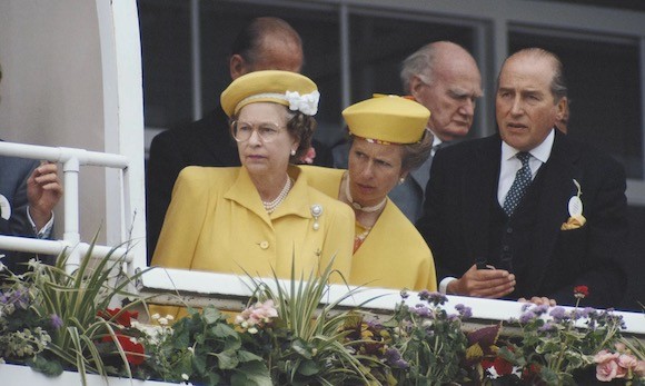 エリザベス女王とその娘は、熱心な競馬ファン。世界で最も権威のあるレースのひとつであるエプソムダービーのフィニッシュを観戦している。(エプソム、1988年6月1日) photo : Getty Images
