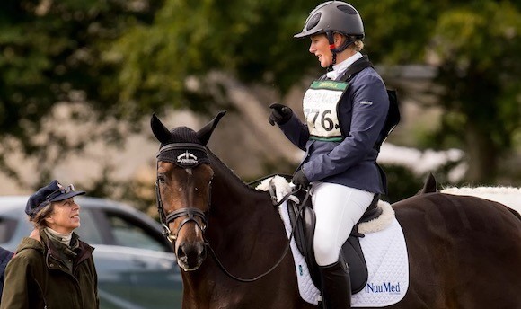 最後の励まし、もしくはアドバイスをするように、娘のザラ・ティンダルと話すアン王女。この日、アン王女の末っ子であるザラは、馬術競技であるワットリー・マナー・ホーストライアルに出場。(ストラウド、2017年9月9日) photo : Getty Images