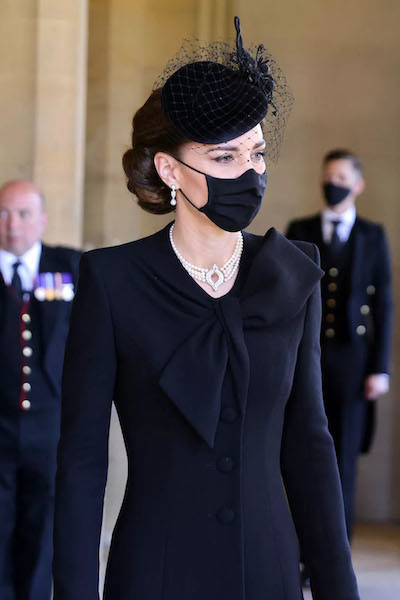 9. キャサリン妃は、女王のコレクションの一つ、真珠のネックレスをつけて。(ウィンザー城、2021年4月17日) photo : PA photo / Abaca