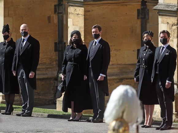 10. ザラ・フィリップスとマイク・ティンダル、ユージェニー王女と夫のジャック・ブルックスバンク、ベアトリス王女とエドアルド・マペッリ・モッツィ。(ウィンザー城、2021年4月17日) photo : PA photo / Abaca