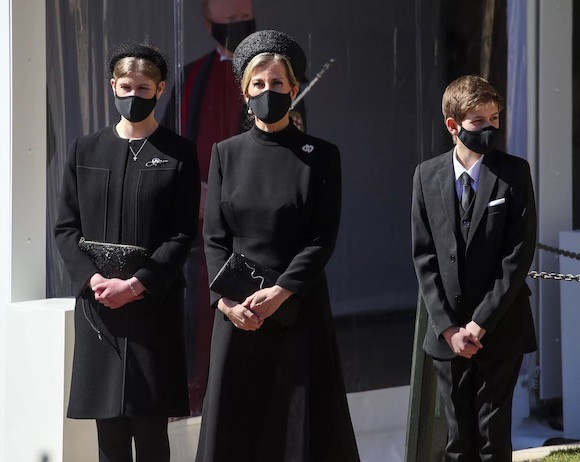 11. ウェセックス伯爵夫人と子どもたち、レディ・ルイーズ・ウィンザーとジェームズ・セヴァーン子爵。(ウィンザー城、2021年4月17日) photo : PA photo / Abaca