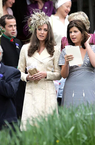 6. バカンス、結婚式、その他の外出…キャサリンはロイヤルファミリーの全イベントに参加。だが、若き「庶民」はまだ控えめだ。ウィリアム王子は、5年間の交際をへてもまだ、キャサリンとの愛を公にしない。困ったことに、キャサリンは「ウェイティ・ケイティ」(忍耐強いケイト)とあだ名をつけられてしまう。(ローラ・パーカー=ボウルズとハリー・ロープスの結婚式にて。イギリス、2006年5月6日) photo : Abaca