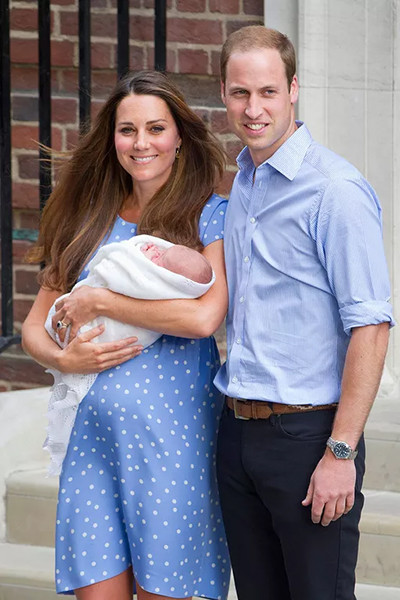 14. 2013年7月22日、キャサリン妃はママに。第一子は、ジョージ・アレクサンダー・ルイ。一人っ子でいる時間はそう長くなかった…(セント・メアリー病院の玄関でお披露目。ロンドン、2013年7月23日)photo:Abaca