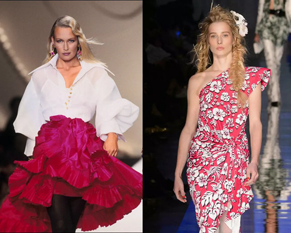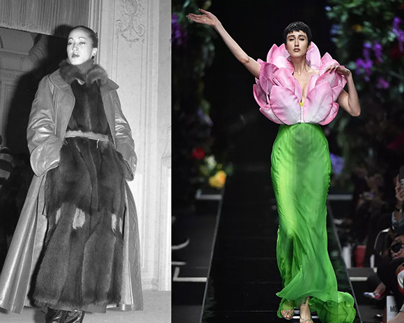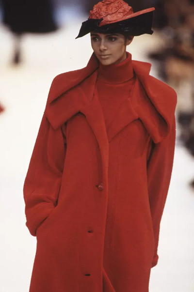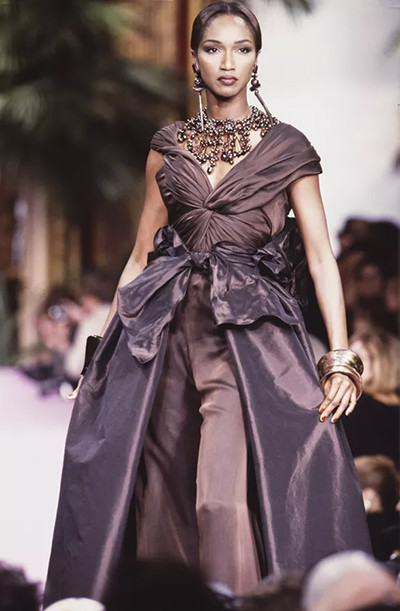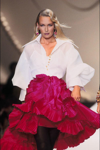 イヴ・サンローランのミューズであり、2008年に亡くなったカトゥーシャは、「プランセス・プル」の愛称で親しまれていた。(クリスチャン・ラクロワ 1993年 春夏オートクチュールコレクション、パリ。1993年1月) photo : Getty