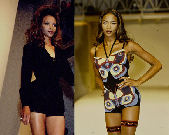 一方、ナオミの母親であるヴァレリー・モリス・キャンベルについては、あまり知られていない。ダンサーとして活躍した彼女は、1993年、42歳の時に娘と一緒にランウェイに登場した。(ミュグレー 1994年 春夏コレクション。パリ、1993年) photo : Getty