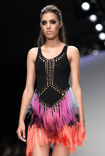 ヤスミンと「デュラン・デュラン」のリードボーカルであるサイモン・ル・ボンの娘は、178メートルの長身。明らかにこの仕事にふさわしい体格をしている。(マーク ファスト 2011年 春夏コレクション。ロンドン、2010年) photo : Getty