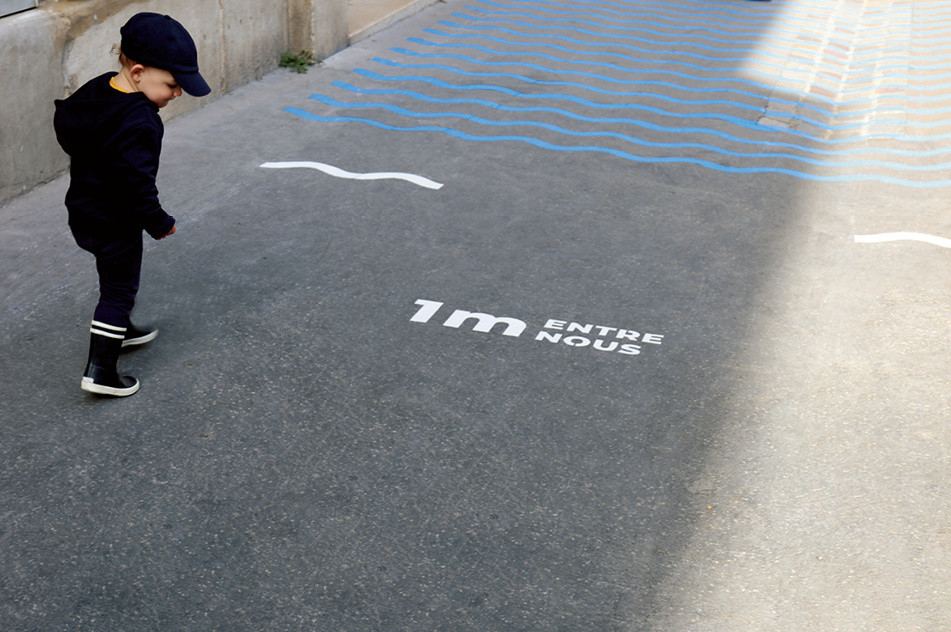 「パンデミックという深刻な問題にユーモラスなデザイン? と躊躇されもしたが、運用後の反応は温かかった」とバランジェは振り返る。波のマークを利用して、子どもたちが遊ぶようになった。市内にあるふたつの屋外市場では、開催日以外にも市場の場所を告知できるサインとして、このデザインを取り入れた。きっかけは感染症対策でも、詩的で笑顔を喚起するデザインは、必要な時期が終わった後も残っていくのだろう。