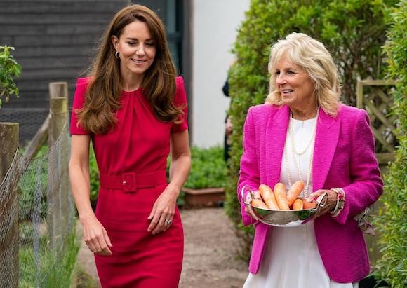 キャサリン妃、ジル・バイデン、そしてニンジン——これは、ケンブリッジ公爵夫人とアメリカ大統領夫人の初対面を象徴するイメージと言えるだろう。ふたりの女性は6月11日、コーンウォール州のセント・アイヴスで、同日から6月13日までイギリスで開催されるG7サミットの機会に、初対面した。