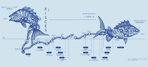 この二匹の魚の矛盾と葛藤、つまり霊的・精神的な世界と物質主義的・科学的な価値観の葛藤は、いまなお続いています。「スピリチュアル」に傾倒しすぎることは、ヘタをしたら冷静な判断を失う危険すらあります。しかし、目に見えないものを信じられないのも虚しいし、生きがいを見つけにくい。僕たちは二匹の魚を同時に泳がせることができる、新しい器を求めなければいけないのかもしれませんね。