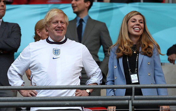 ユーロ2020の決勝戦を観戦するボリス・ジョンソンとキャリー・シモンズ。(ロンドン、2021年7月7日) photo:Getty Images