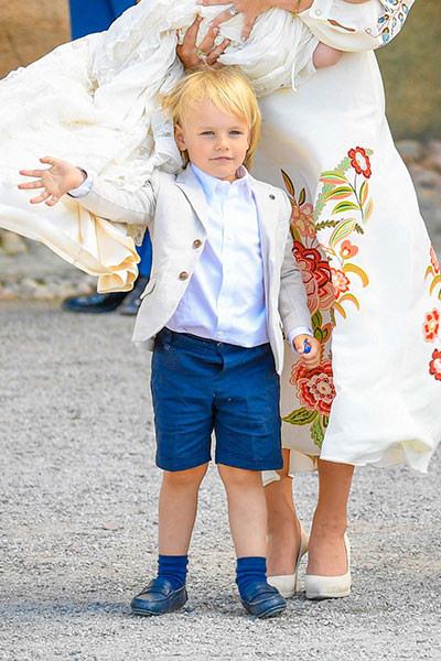 9. 弟のジュリアンの洗礼式に出席する3歳のガブリエル王子。(ドロットニングホルム、2021年8月14日)
