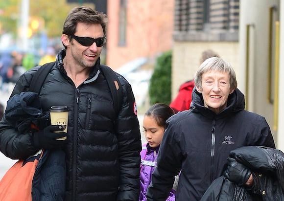 ソーホー地区を母親と歩くヒュー・ジャックマン。(ニューヨーク、2013年11月)photo : Getty Images