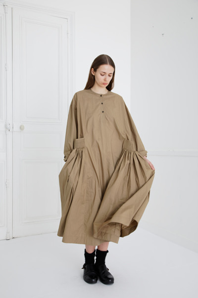 スカートの部分の緩やかなふくらみや、アースカラーのナチュラルな風合いが心地いいドレス「ダニエラ」¥136,900(予定価格)/エコール・ド・キュリオジテ