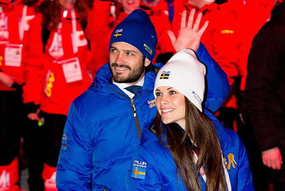 片時も離れない、ますます仲睦まじく、愛情溢れるふたりの恋人たち。(ノルディックスキー世界選手権開会式、2015年2月15日)