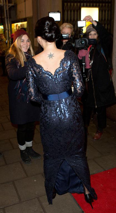 未来のプリンセスがノーベル賞授賞式会場である“コンサートホール”の巨大なドームの下に現れると、そうそうたる顔ぶれの参会者が一同に息を飲んだ。スウェーデン王室の年間行事のなかでも最も華やかなこのイベントに初出席した彼女はまばゆいばかりの美しさだった。彼女が纏っているドレスは、ストラスが刺しゅうされたフランボワーズ色のブラウスと、トレーンが華やかなボリュームたっぷりのチュールのスカートのアンサンブル。妖精のような繊細さと現代性を併せ持つドレス。(ストックホルム、2014年12月10日)