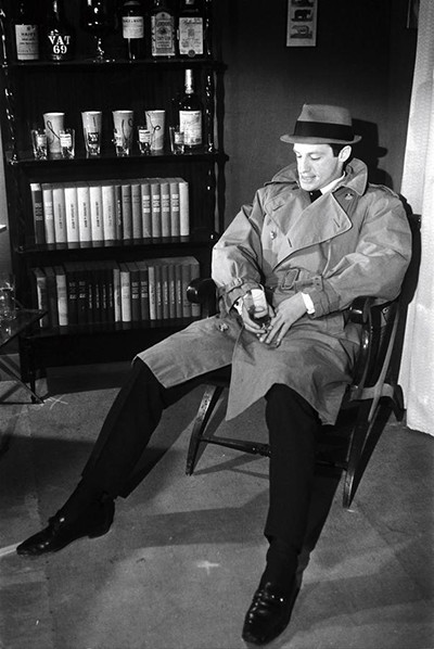映画『いぬ』では帽子とマッキントッシュコート姿を披露。(1962年5月24日)