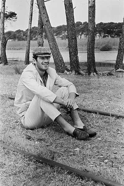映画『気狂いピエロ』の撮影現場で。(1965年6月)